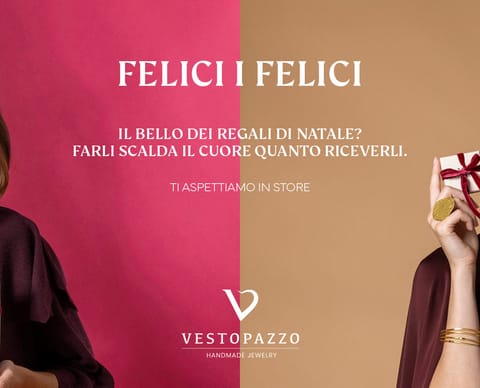 Scopri il mondo di Vestopazzo, brand italiano di handmade jewelry e accessori moda che racconta storie uniche dal 1994: collezioni realizzate con materiali altamente selezionati, cura artigianale e un design unico. Creatività e passione danno vita a stili per ogni occasione. Crediamo nell’espressione personale, nel valore dei ricordi e nella bellezza di ogni dettaglio. Vieni a trovarci: insieme troveremo il tuo nuovo look firmato Vestopazzo.