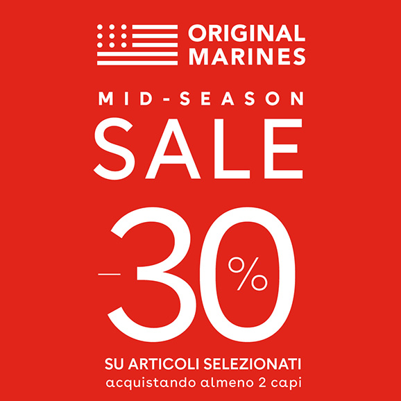 Da Original Marines sono iniziati i Mid-Season Sale! Acquista almeno 2 capi e ottieni subito  il –30% su articoli selezionati. Ti aspettiamo in store, solo da Original Marines.