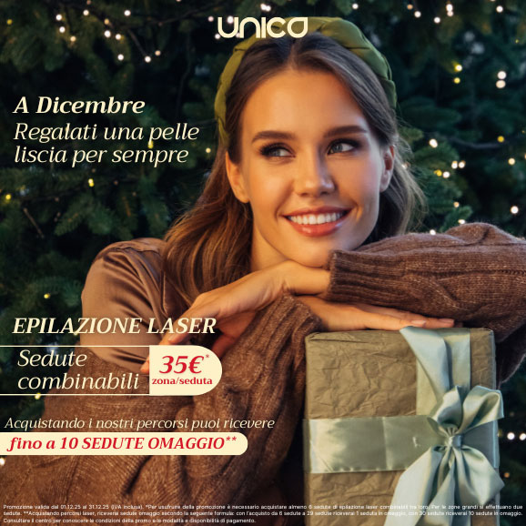 L'aria profuma di festa, i ritmi rallentano, e la pelle — tra freddo e luci scintillanti — cerca calore, cura e momenti dedicati solo a te. Da Unico, puoi iniziare i tuoi percorsi di epilazione laser e regalarti trattamenti che rigenerano, valorizzano e accompagnano con dolcezza la fine dell'anno   Estetica Avanzata a 49,90€ a seduta ...e prodotti omaggio per coccolare viso e corpo